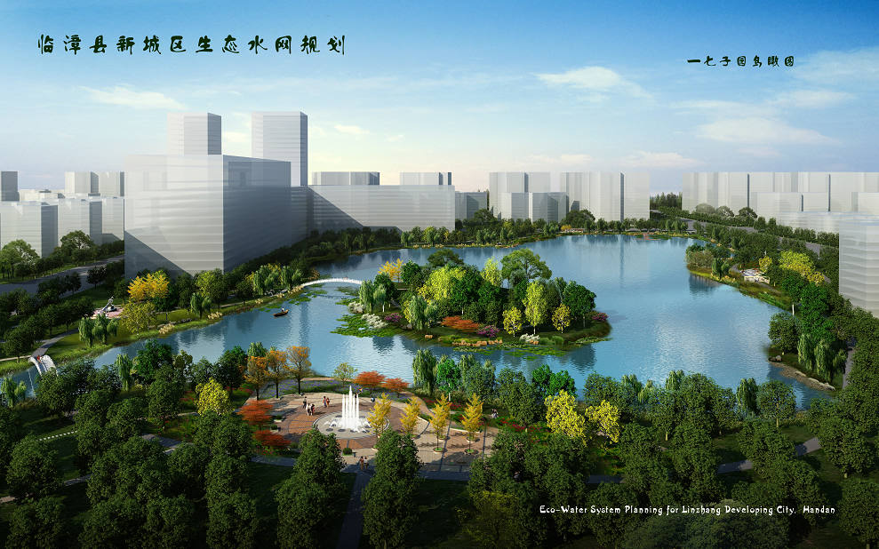 通過增加城市水面、增加城市綠地的方式提高城市生態(tài)環(huán)境質(zhì)量,統(tǒng)籌規(guī)劃建設(shè)“綠網(wǎng)、綠帶、綠點(diǎn)”,并寓鄴城文化于綠化之中,優(yōu)化綠化布局,提升綠化品位,突出城市特色。在城市水面上,將民有南、北干渠的水引入城區(qū),將城區(qū)內(nèi)原有的河流、坑塘連接起來,沿途以人工湖作點(diǎn)綴,打造秀美水景,依托城區(qū)內(nèi)河流水系、城市綠化帶及城市主題公園,再現(xiàn)臨漳歷史文化特色。實現(xiàn)“北方水城,具有古鄴文化特色的園林城市”這一風(fēng)貌特色。